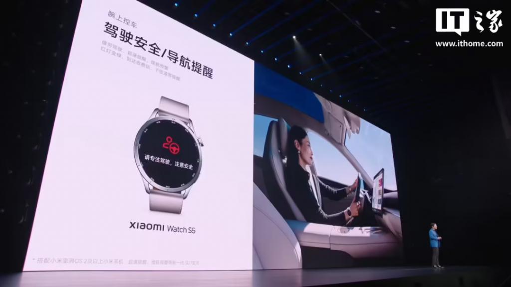 值得注意的是,小米手表 S5 可作为腕上控制中心,可深度联动小米汽车,并新增主动提醒功能:疲劳驾驶、超速等情况下,驾驶安全强振动提醒;过红绿灯、上匝道等节点,导航路线防错过提醒(表端小米汽车 App,支持新一代 SU7 和 YU7)。
