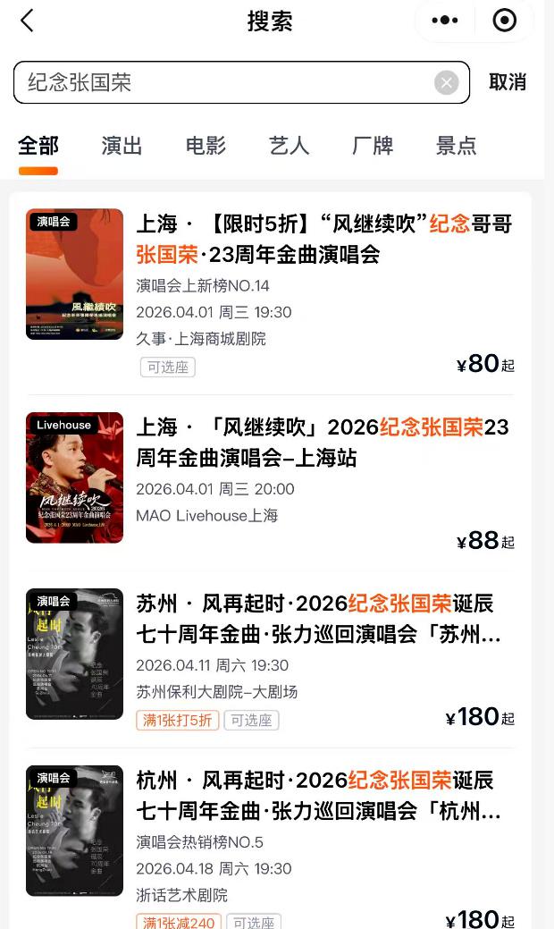 首页 > 学习 大量“纪念张国荣”演唱会被指侵权 近日,售票平台出现多场以 " 纪念张国荣 " 为名的演唱会及演出活动信息。3 月 25 日,香港环球唱片与张国荣挚友陈淑芬携手发布一封致张国荣粉丝们的信。信中表示,对大家怀念 " 哥哥 " 的行为和观众的心情报以极大的尊重,始终心怀感念。但截至目前,对演出相关并未对外做过任何类似授权。希望大家一同以尊重的方式,守护对 " 哥哥 " 的这份珍贵的情感," 让继续怀念不被消费,让继续宠爱不被辜负。"新快报记者 徐绍娜