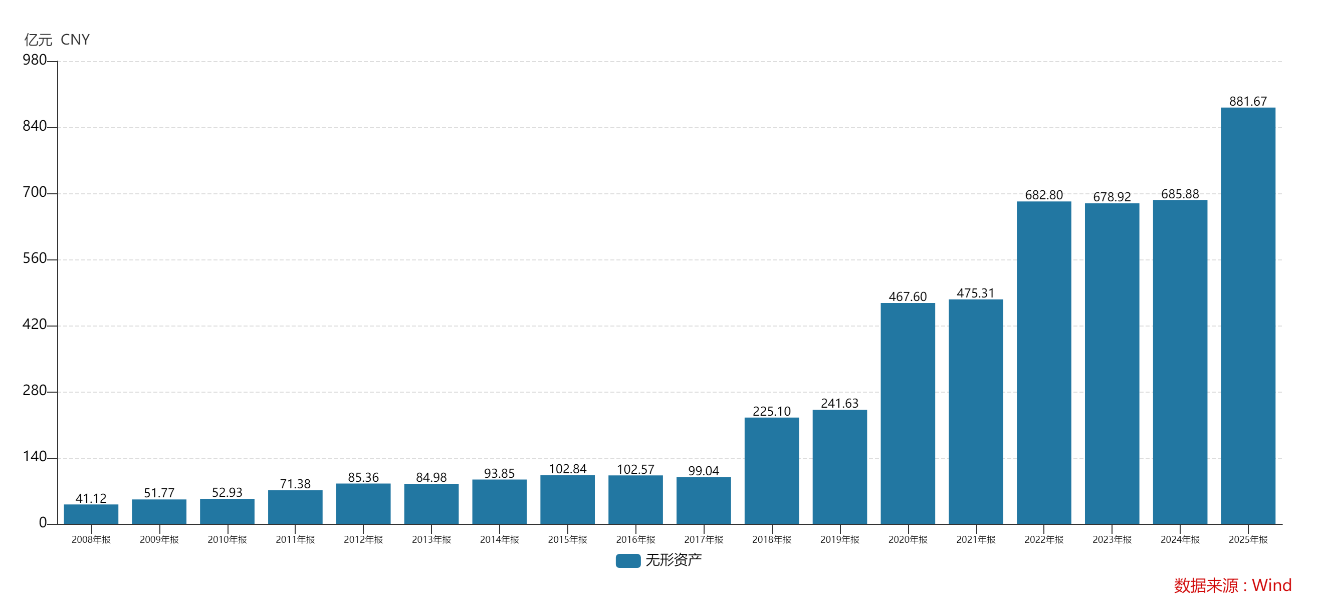 不惜巨资掌握境内外矿产资源的同时,紫金矿业的无形资产已从2019年年底的241.63亿元连续攀升至2025年年底的881.67亿元。