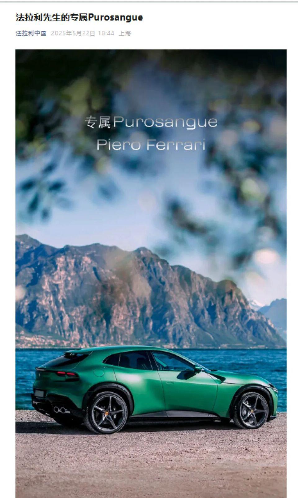 发布当晚,法拉利中国在官方公众号上推送了一篇文章,标题是《法拉利先生专属的 Purosangue》,正文只有一张宝石绿色跑车的图片。这个配色与 YU7 发布会的主色调几乎一模一样,被外界解读为一种含蓄的 " 隔空喊话 "。