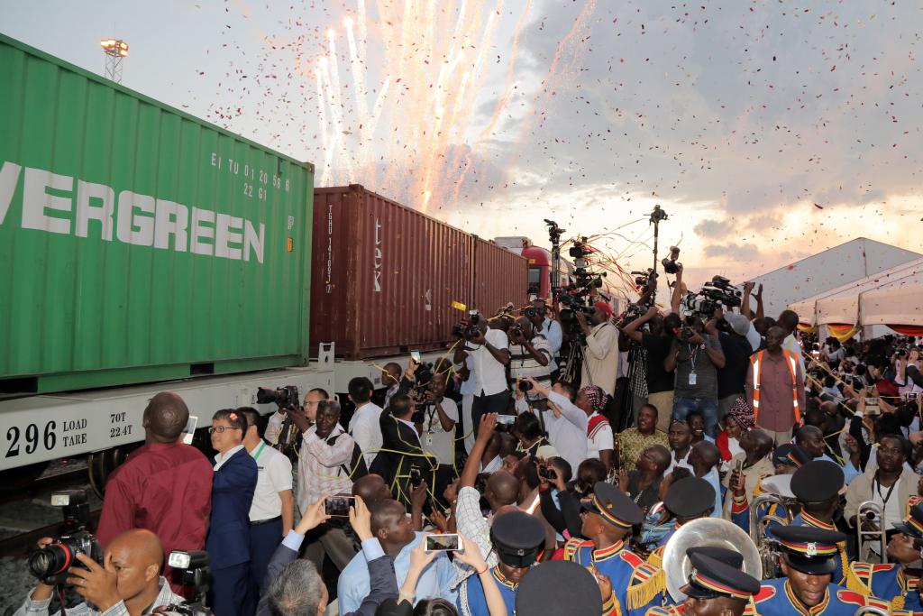 2017 年 5 月 30 日,蒙内铁路移交仪式在肯尼亚港口城市蒙巴萨举行。由中国企业承建的蒙内铁路自开通运营以来,为肯尼亚民众提供大量新的就业岗位。(资料图)中新社记者 宋方灿 摄