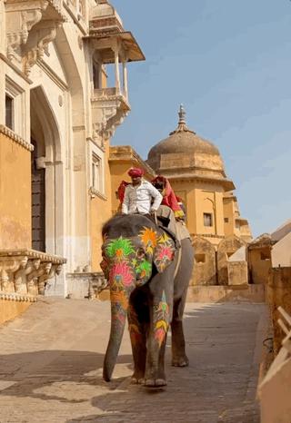 解释一:斋浦尔当地人过大象节的时候,也会给大象涂颜料。