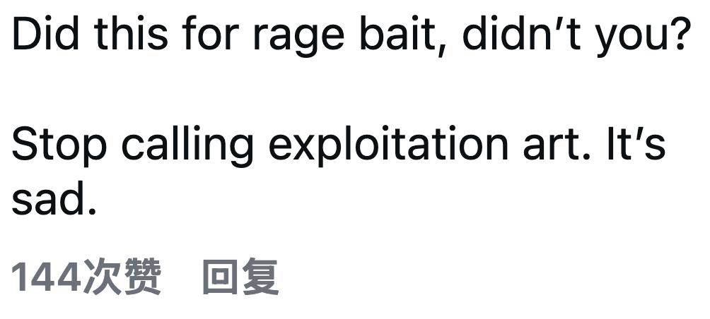 " 你故意拍这种让人愤怒点击的东西,是不是?别说剥削是艺术了,那是很悲伤的。"