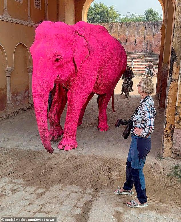 外网骂翻!知名摄影师为出片将65岁大象全身染成粉红色,拍完没多久它死了