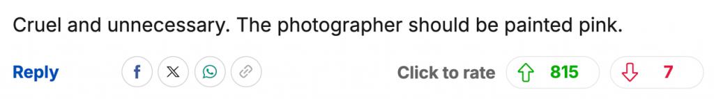 " 残忍且没必要。这个摄影师才该被涂成粉色。"