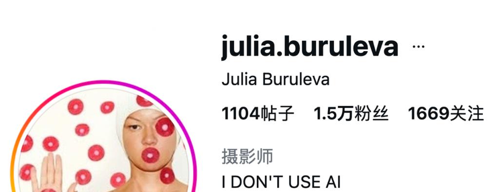 这时大家可能要再看看茱莉亚的页面简介,明确大写了:" 我不用 AI。"