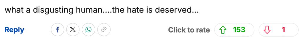 " 真是个恶心的人 … 活该被大家恨 …"