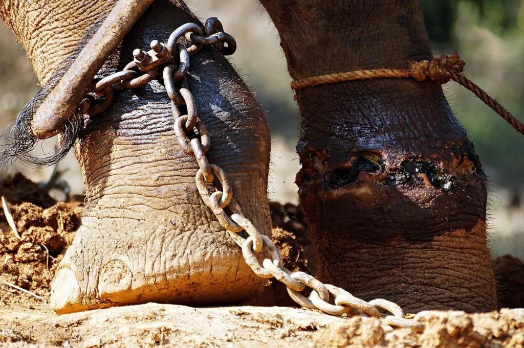 大家一边崇拜大象,一边却在长期性的商业化运作里,忽略大象的权益。商业活动、嘈杂的节庆环境、随时被锁住的身体,更别提它们可能遭遇的暴力训练。