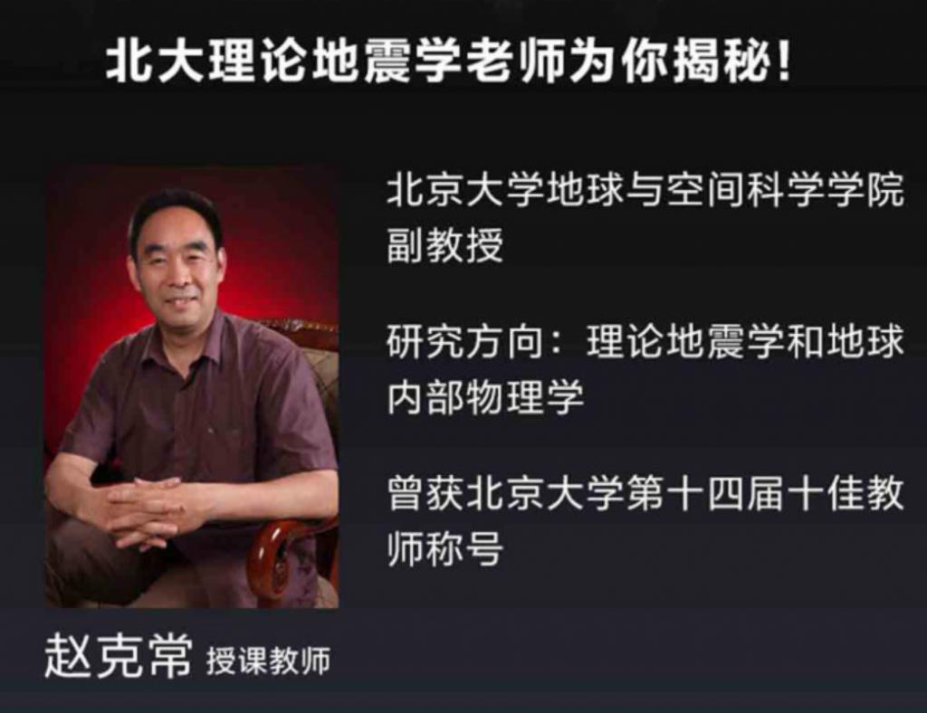 2014 年 2 月,北京大学微信公众号就曾刊文《开学第一课——那些年我们一起追的北大 " 热 " 课》介绍:大家知道北京大学第一大通选课是什么吗?答曰:赵克常老师的地震概论。
