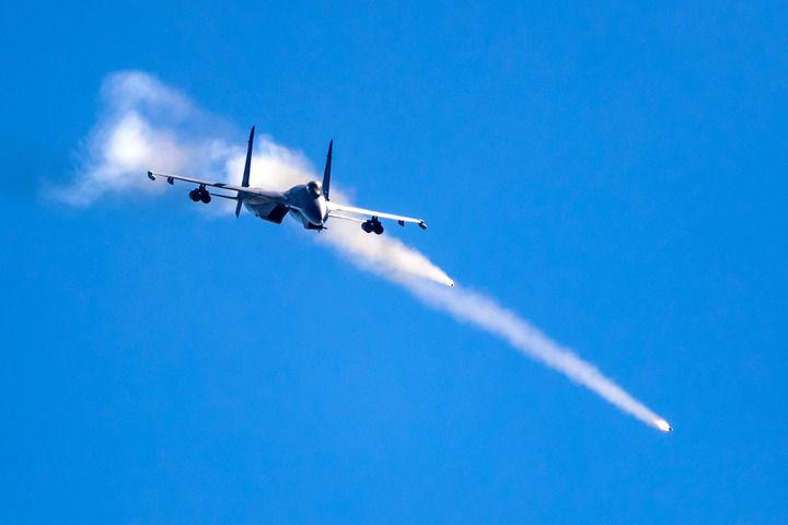 空军航空兵某旅"强军先锋飞行大队"飞行员驾驶战机进行对地打靶训练(2018年9月7日摄)。新华社发(杨盼 摄)