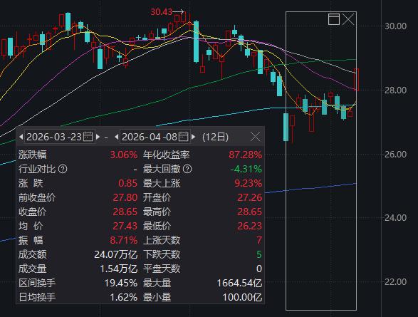 消息面上,上交所最新数据显示,今年 3 月沪市 A 股新开户数超 460 万户,环比增长 82.38%,同比增长 50.10%。一季度沪市 A 股累计新开户数达 1204.02 万户,同比增长 61.15%。