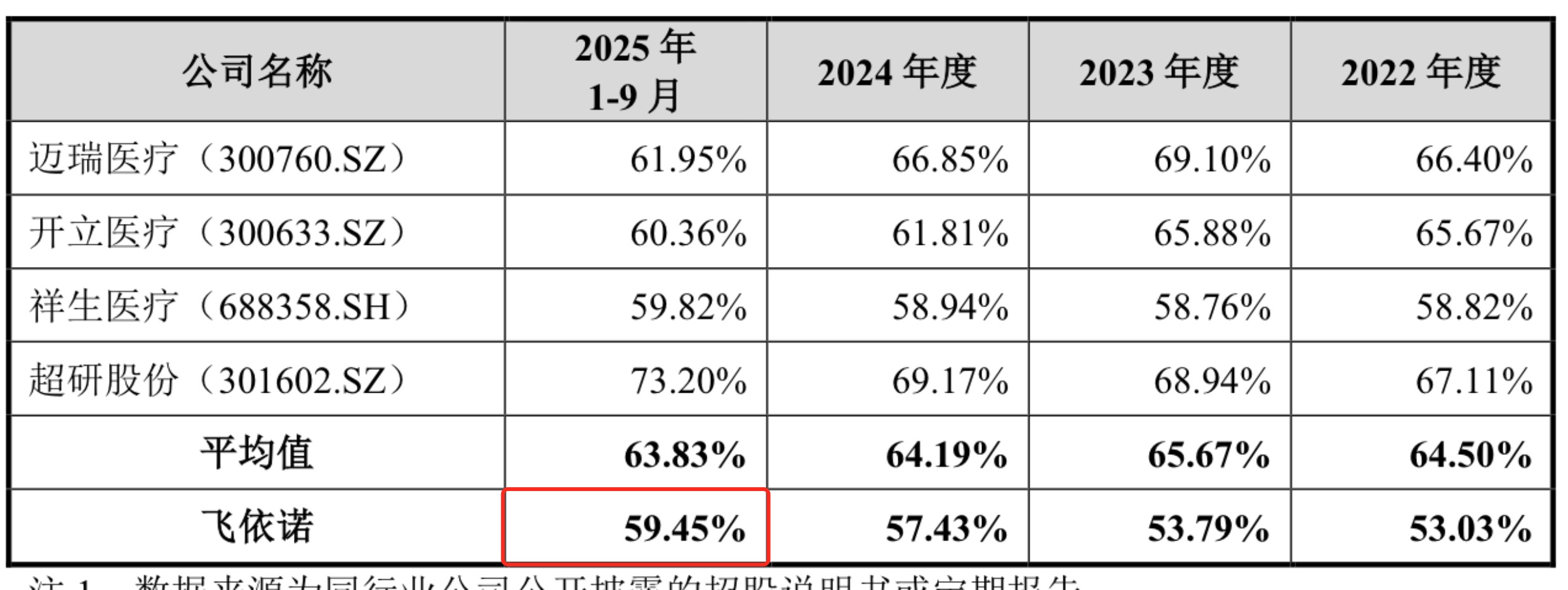 2025年前9月,飞依诺的毛利率追赶至59.45%,与祥生医疗(688358.SH)的59.82%基本相当,但与迈瑞和开立之间仍有差距,且报告期内公司毛利率数据始终低于行业平均值约5个百分点。这也反映出飞依诺在品牌溢价和规模效应上仍与迈瑞医疗、开立医疗等一线厂商存在显著距离。