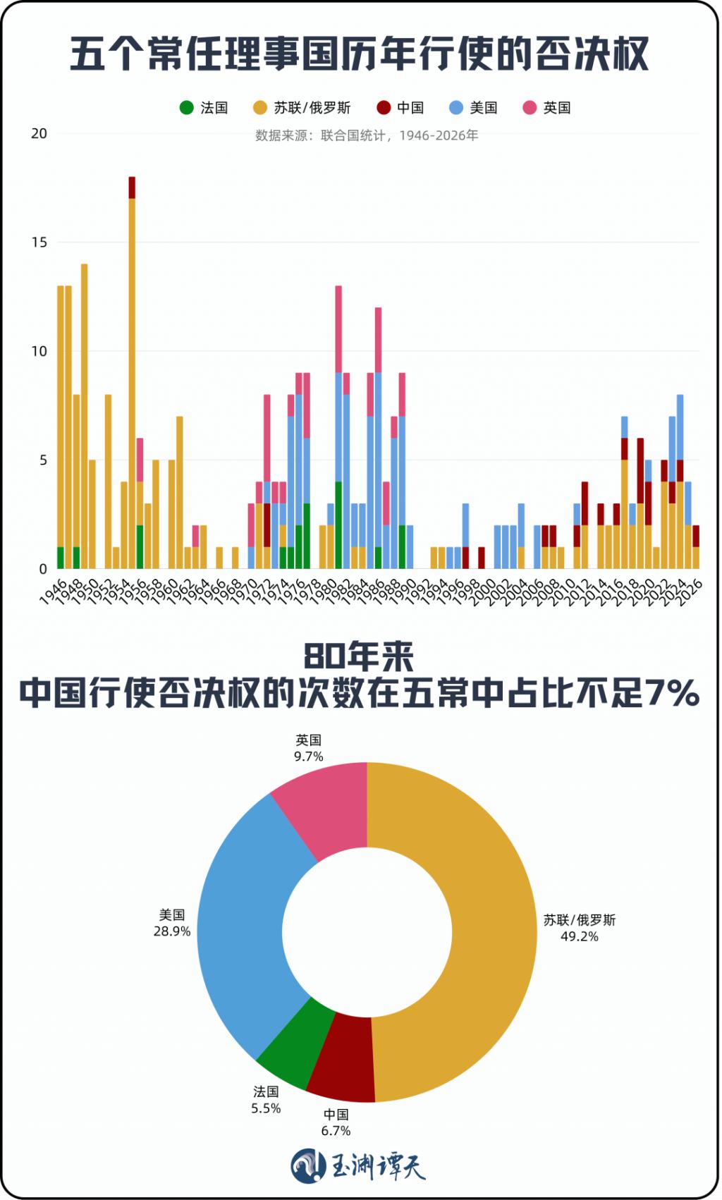 中国上一次行使否决权是在两年前,美国提出加沙停火决议草案的时候。根据联合国统计,历史上 329 次否决中,中国只占 22 次,占比不足 7%。