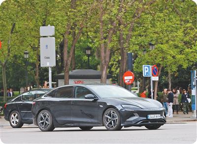 行驶在马德里街头的中国品牌电动汽车。本报记者 许海林摄
