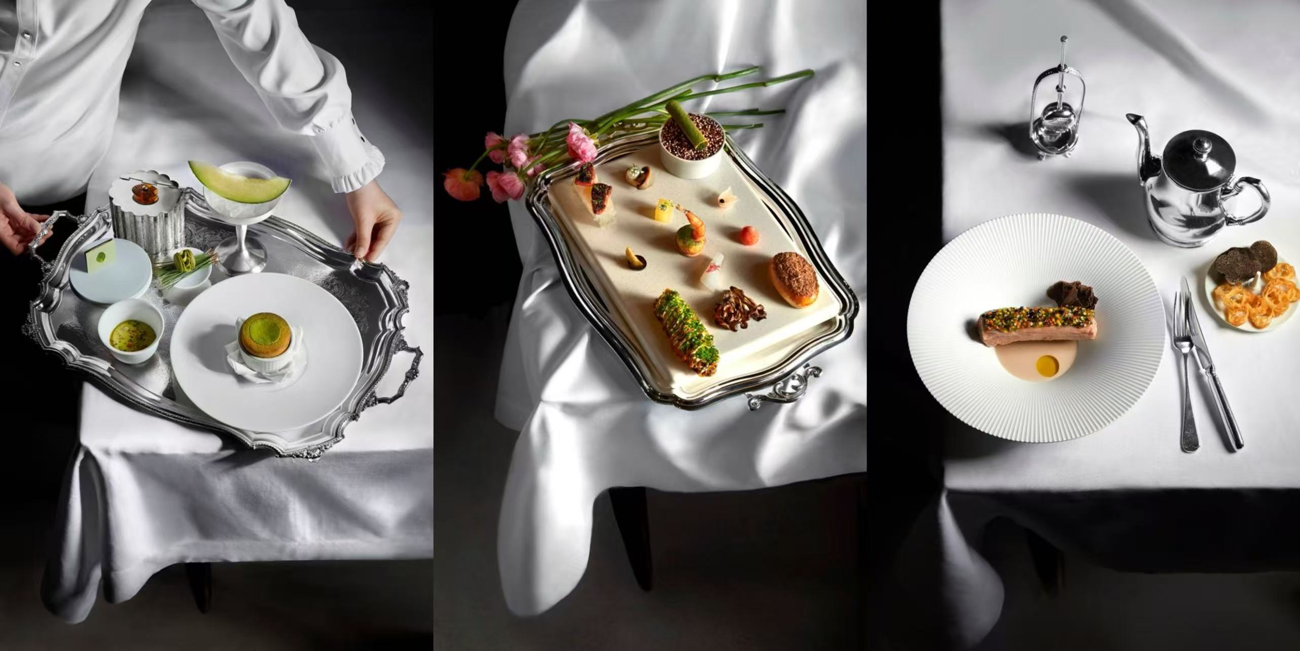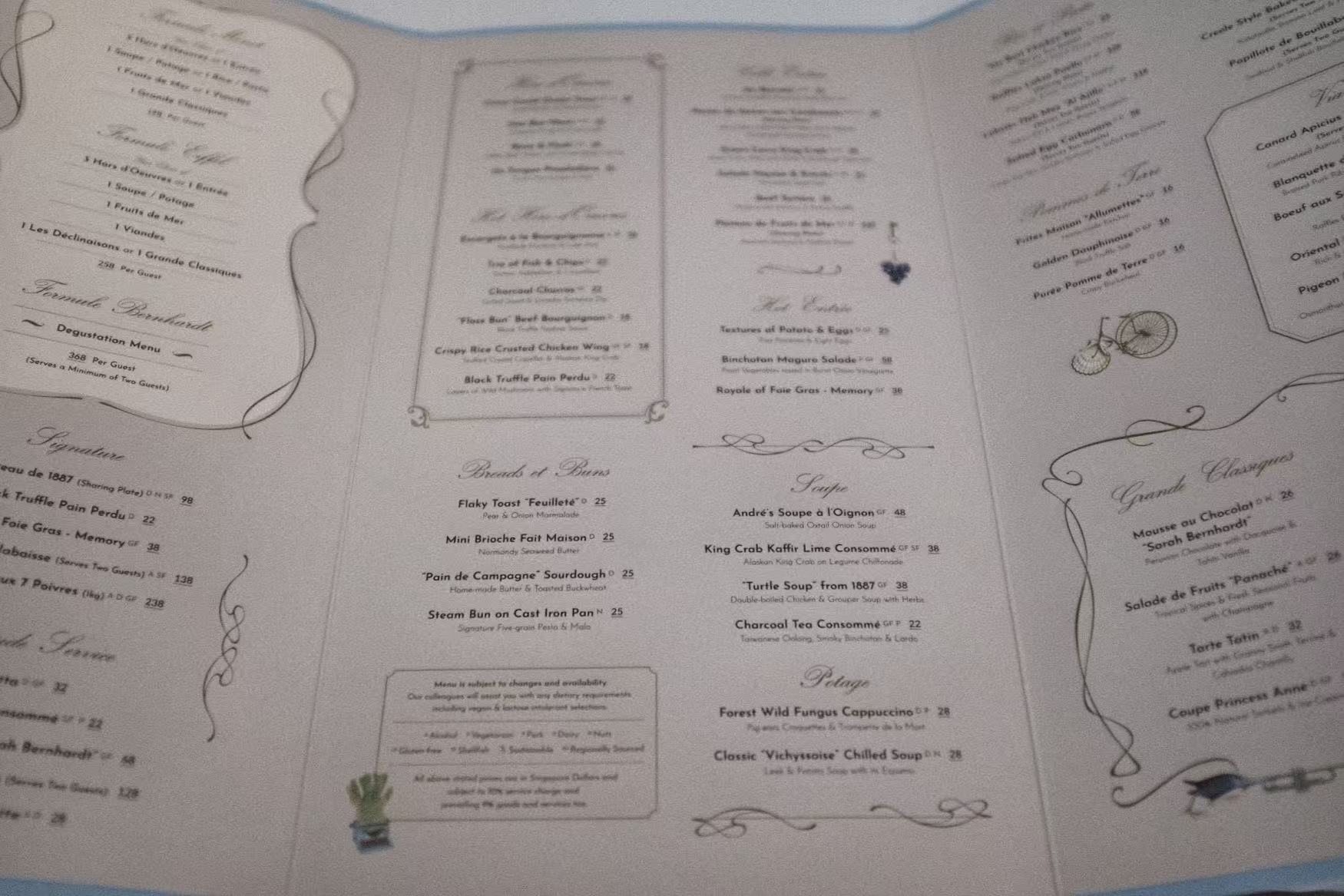 餐桌上的历史感也被延续到了服务细节中。餐厅也沿用莱佛士珍藏的传统银器,以及修复后的经典切肉餐车与服务器具。这些细节并不只是“怀旧装饰”,而是在提醒客人:这家餐厅试图承接的,并不只是几道新菜,而是一整套昔日奢华酒店餐饮所特有的服务传统与仪式感。
