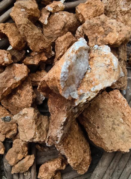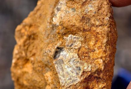 真正让他觉得 " 希望较大 " 的,是另一张照片里的一块硅化褐铁矿化岩石。这种石头表面常有铁锈色,质地坚硬,是金矿常见的伴生现象。