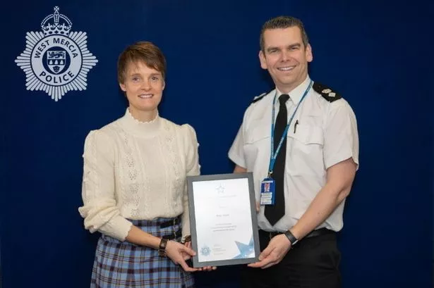 Mairi Kerin和总警司Edd Williams一起获奖(图片来源:西麦西亚警察局/ SWNS)
