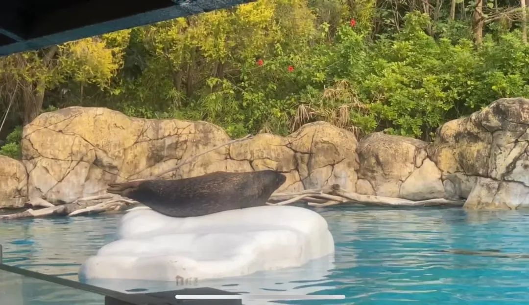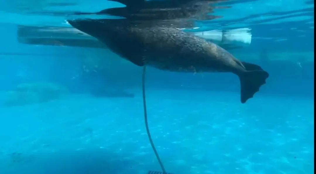 珠海长隆斑海豹疑似被铁链固定水下,园区回应:拍摄错位产生误解