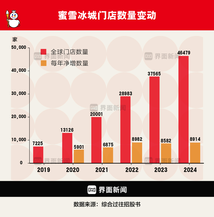 充足的资金与成熟机构的辅助让蜜雪冰城的扩张插上了更大的翅膀。2022-2024年间,蜜雪冰城每年以超8000家的数量递增,成为中国消费市场分层与共性博弈的极致样本。