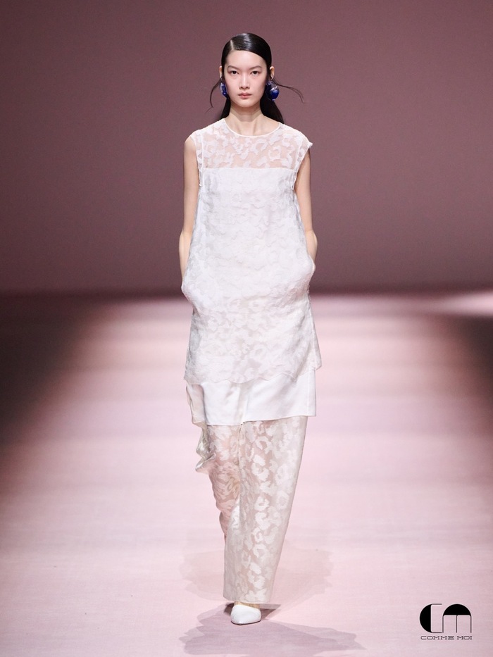 整场发布从视觉、结构到工艺语言,均围绕“轻盈而坚定”的女性气质展开。COMME MOI借由2025春夏系列,继续推进都市时装的温柔表达与自由精神的融合。