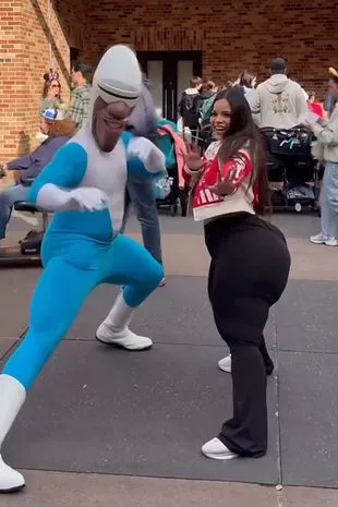她甚至还见到了一些她最喜欢的迪士尼人物(图片:果酱媒体/ @graciebon)