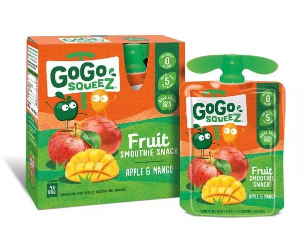 GoGo squeeZ是一款水果冰沙零食,由100%真正的水果制成,为孩子们提供一天五份蔬果之一,也是纤维的来源,不含人工添加,建议零售价2.55英镑(4包)。