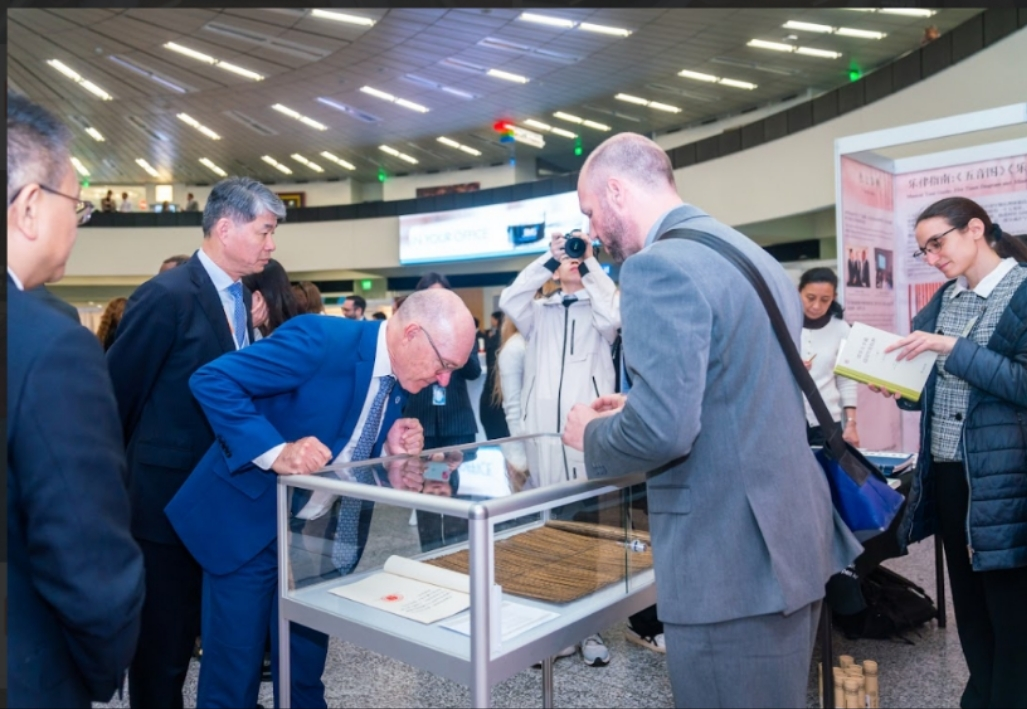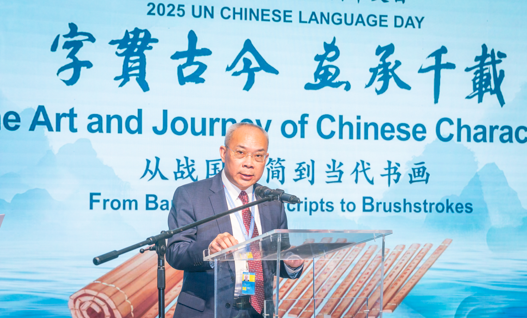 此次中文日活动以“字贯古今 画承千载——从战国竹简到当代书画”为主题,由中国常驻维也纳代表团、维也纳联合国办事处主办,中央数字电视书画频道、清华大学、安徽大学、吉林大学协办,共同为维也纳联合国总部献上了一场中国文化盛宴。清华大学副校长彭刚、数字电视书画频道董事局主席王平在开幕式上致辞,探讨了文字、文化、文明三者之间的紧密关系和文明交流互鉴的重要意义。