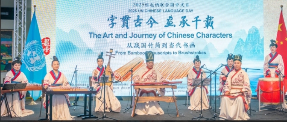 来宾怀着浓厚兴趣参观战国竹简、中国传统绘画和书法作品展览,深切感受中国文字、文化、文明的发展传承、美学意境和时代意义。苏士澍、徐里、包俊宜、罗杨等书画家现场挥毫泼墨,身着汉服的艺术家演奏《春江花月夜》《沧海一声笑》等传统名曲,获得观众阵阵热烈掌声。来宾们表示,联合国中文日选在中国传统节气“谷雨”,正像中国在联合国发挥的重要作用,带来春天般的希望和动力。