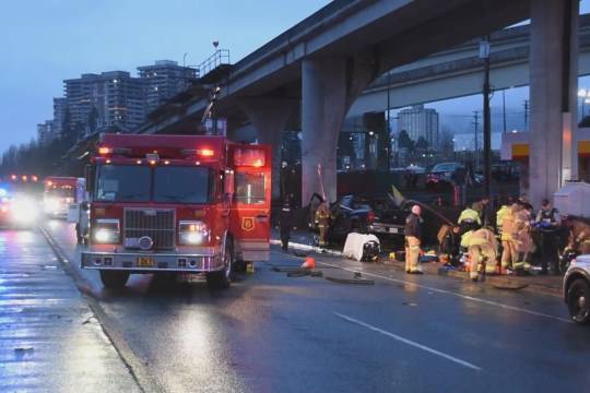 本拿比皇家骑警正在调查两名妇女在人行道上被撞的事故