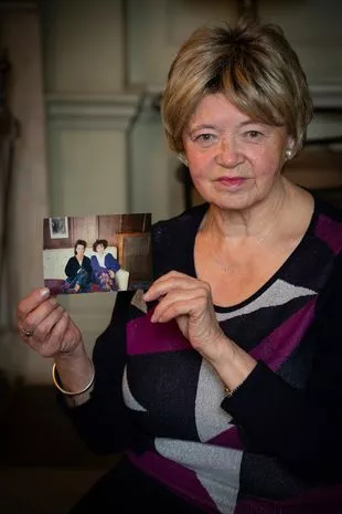 克劳迪娅·劳伦斯的妈妈琼拿着克劳迪娅和她最好的朋友丽莎·威尔登的照片(图片来源:Andy Stenning/Daily Mirror)