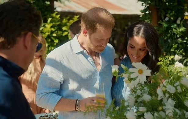在早午餐派对上,她把哈利介绍给镜头,他尴尬地挥手。他们亲吻拥抱,看着梅根做的食物,王子对她说:“做得好。你做得很好。”梅根补充道:“谢谢你”,然后哈里说:“我喜欢。”