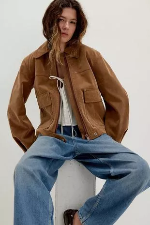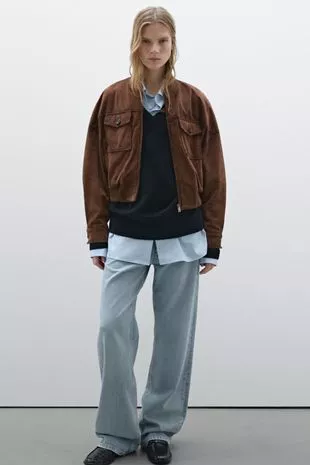 其中一件夹克是积家的麂皮运动夹克零售价为299英镑,但目前大多数尺码都脱销了。的下一件是Zara的巧克力棕色飞行员夹克。