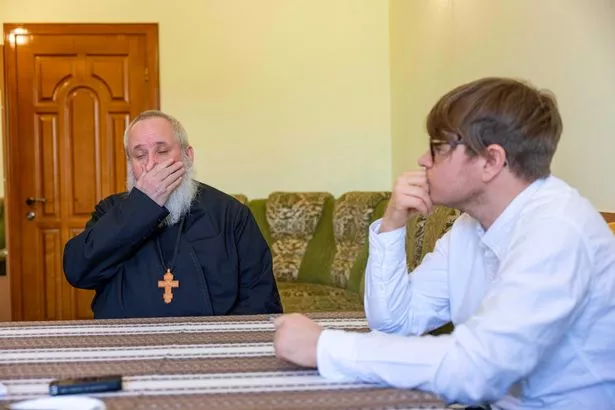 博丹神父接受了《镜报》记者西蒙·墨菲的采访。(图片来源:Rowan Griffiths / Daily Mirror)