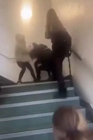 据报道,一名女学生在一场令人震惊的打斗中被另一名学生袭击,视频显示她被拳打脚踢,头发被抓,其他人在一旁笑。