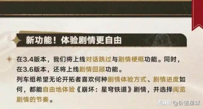 《崩铁》则在这个7月做了个“违背祖宗”的决定,史无前例地加入了“剧情跳过”按钮。要知道《崩铁》和《原神》的剧情不仅不能跳过,而且连倍速播放都没有,自动播放的情况下,玩家要手动选择选项,不然就会停止自动播放卡在选择画面。