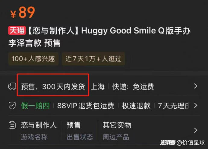 另一方面,厂商开始备现货了。比如叠纸与X11合作的盲盒,6月1日上线首发,拍下即发货,手速快的玩家在第二天就可以享受拆盒的快乐。没赶上现货的人也不用等太久,1-2周即发货,比起过去一等半年快太多了。