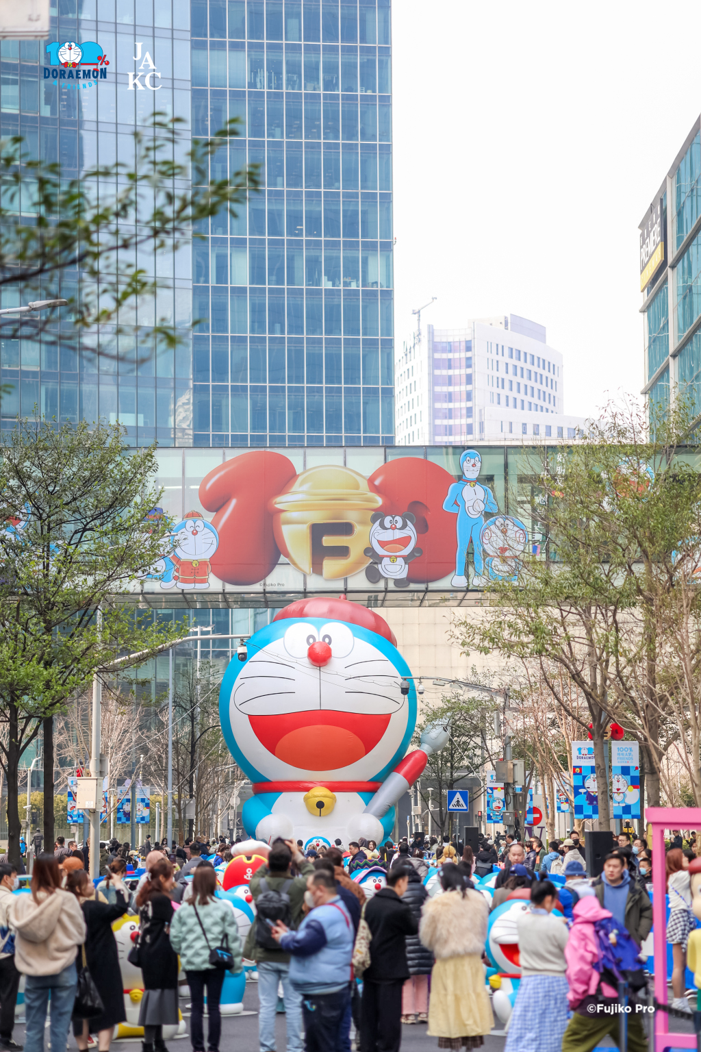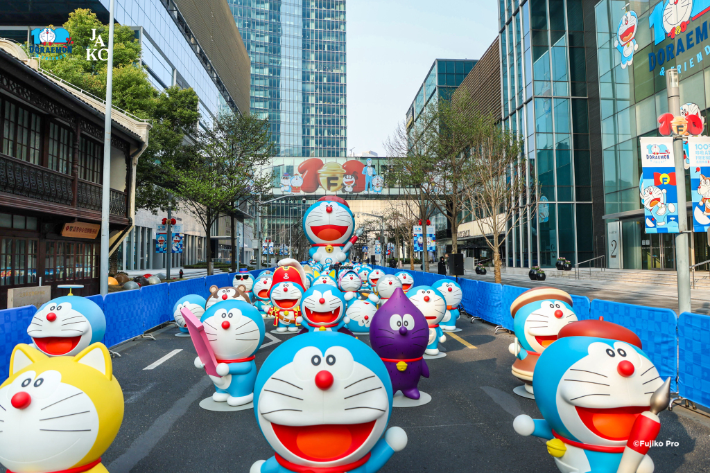 数量空前的哆啦A梦在街头大集结,上海核心商圈化身漫画世界。