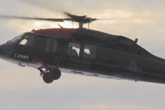 加拿大皇家骑警黑鹰直升机部署在加拿大-美国边境。边境