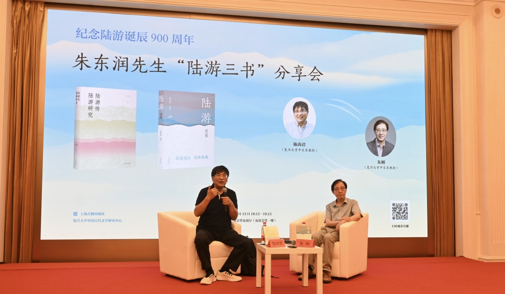 2025年是南宋诗人陆游诞辰900周年,8月13日晚,上海古籍出版社邀请复旦大学中文系陈尚君、朱刚两位教授,于上海书展现场,举行了纪念陆游诞辰900周年:朱东润先生“陆游三书”的分享会。