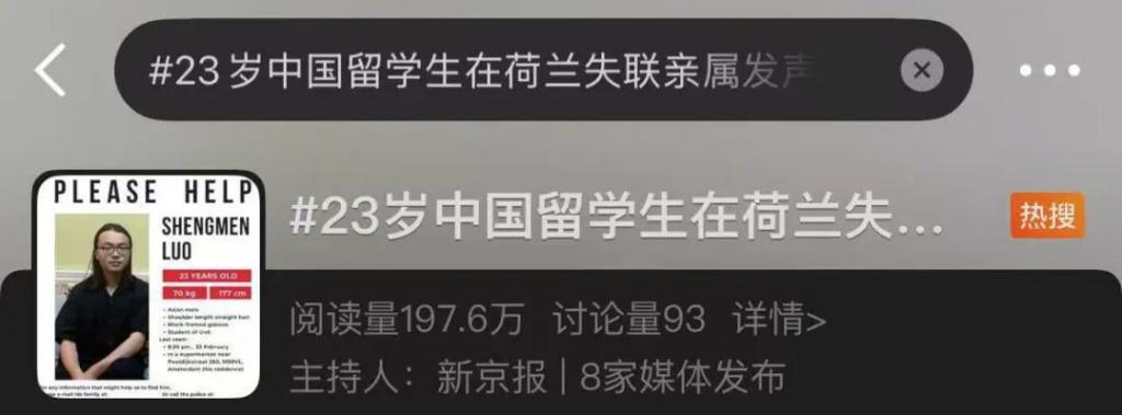 3 月 10 日,国内外社交媒体上,出现多篇关于留学荷兰的 23 岁清华毕业生罗生门的寻人启事。