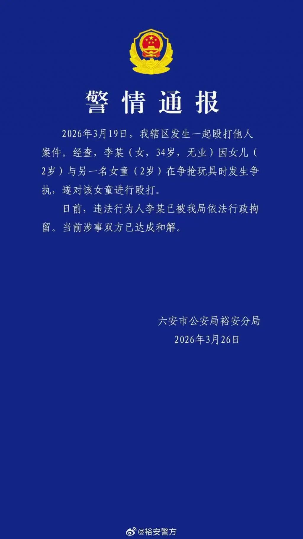 早前报道:两幼童玩耍时发生小摩擦,家长拍打另一孩童致其手指骨折、耳膜稍出血来源:钱江晚报(2026年...