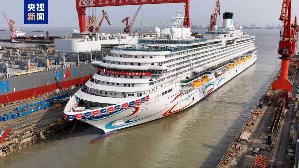 今天(20日)下午,第二艘国产大型邮轮"爱达·花城号"开始出坞。"爱达...