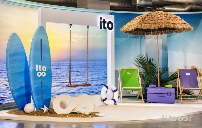 现场设有三大沉浸式体验区:「无界都市」以灯光与建筑元素重构城市漫游氛围;「无尽曙光」还原阳光沙滩度假场景;「无垠旷野」通过绿意与自然声效营造山野谧境。体验者可在互动中感受都市、海滨与自然的不同魅力,并结合ITO旅行产品,完成一场身心旅程。