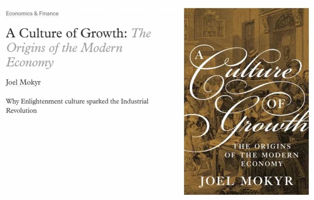 更重要的是,莫基尔强调文化、制度与认知结构的互动——一个社会必须具备容纳、保护甚至奖励新思想的机制,才能使创新持续发生。这是为何 17 世纪的英国率先踏上增长之路:不是因为天赋资源,而是因为思想解放。