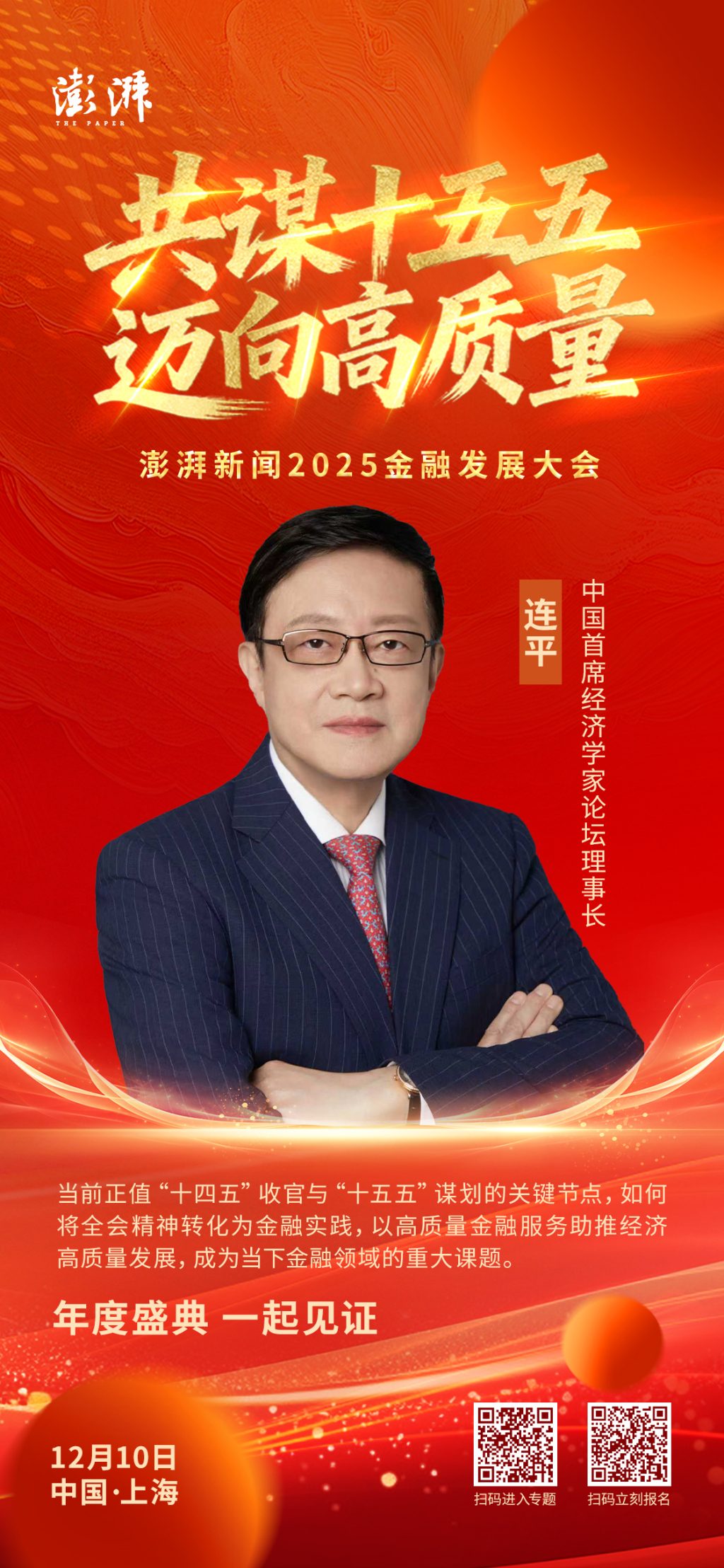 聚智谋远,共创未来。2025年12月10日,由澎湃新闻主办的2025年金融发展大会,以“共谋十五五 迈向高质量”为主题,旨在汇聚经济金融领域的顶尖学者与行业领军人物,围绕金融强国建设路径、“十五五”规划下的金融发力方向展开深度对话。