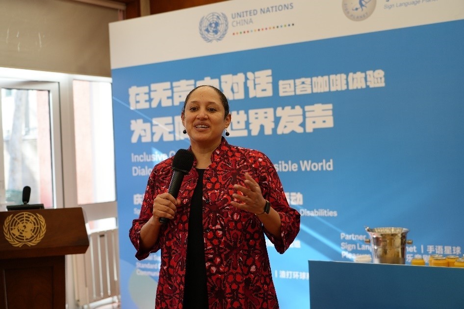12月3日,2025年国际残障人日之际,联合国中国残障主题组(UNTGD)联合手语星球与乐意剧团,在北京联合国大楼举办主题活动“包容咖啡体验:在无声中对话,为无障碍世界发声”。活动得到渣打环球商业服务有限公司和中国传媒大学的特别支持。通过沉浸式互动体验、残障社群故事分享与艺术呈现,活动旨在促进公众对无障碍环境建设与残障包容的深入理解。