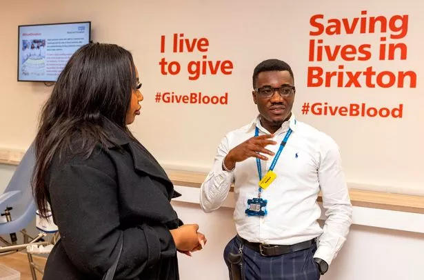 《镜报》的香农·米勒采访了布里克斯顿献血中心的经理Rexford Osei-Bonsu(图片:菲尔·哈里斯)