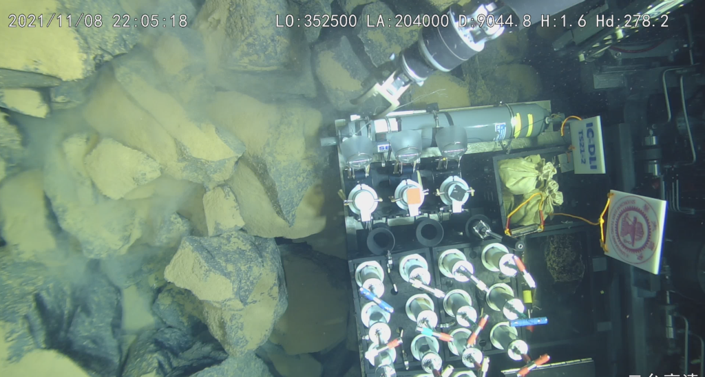 “奋斗者”号正在采样。图片由该研究的作者提供。