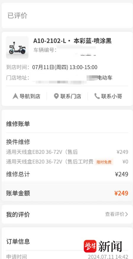 湖北武汉的姚先生介绍,他于 2022 年在当地一家线下门店,花费 1000 多元购入了一辆电动车。2024 年 7 月,该车出现定位不准的问题,他前往门店花费 249 元更换了通用天线盒," 当时更换的还是 2G 的天线盒,我也根本不知道 2G 网络会退网的事情。"