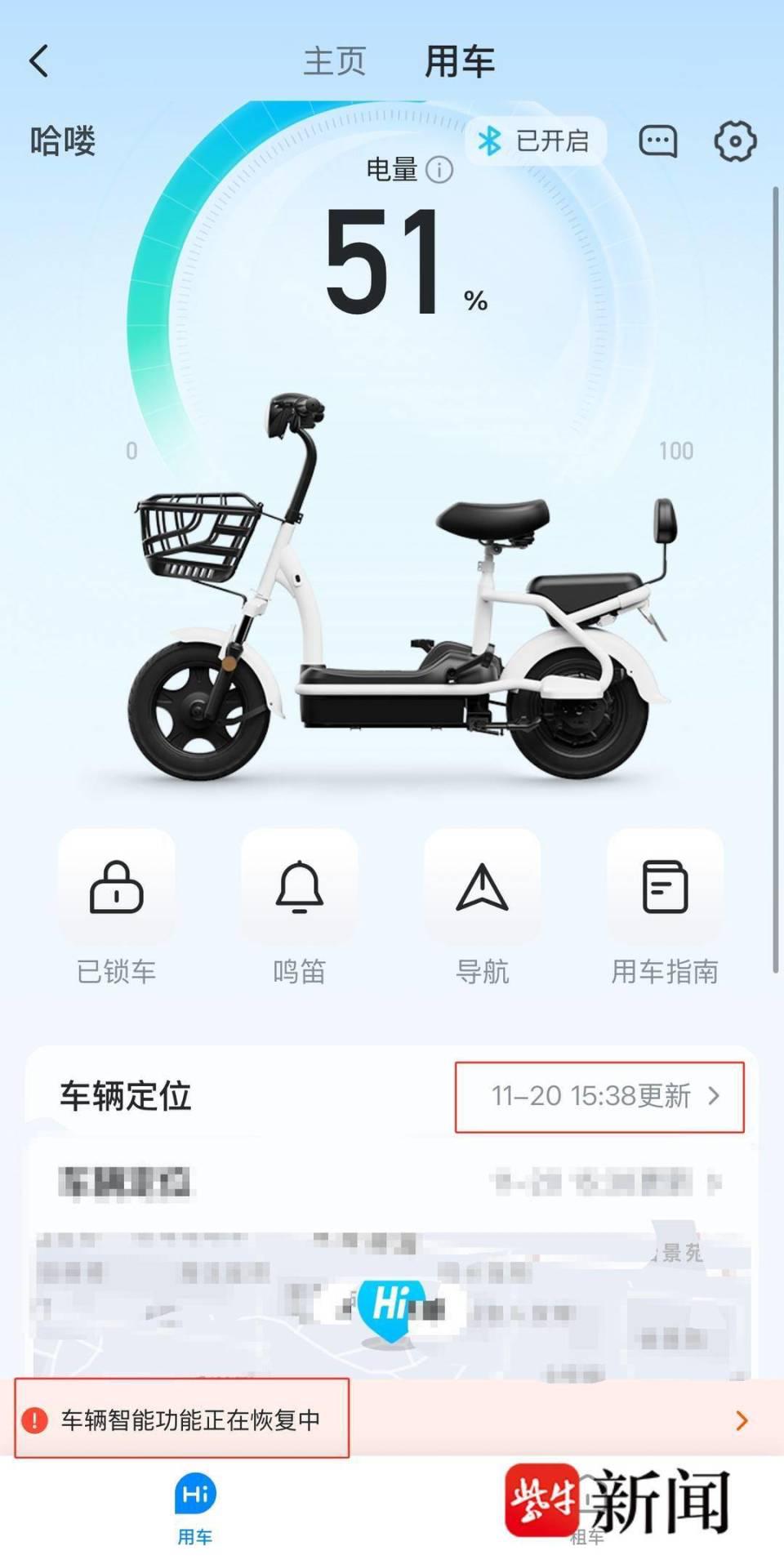2025 年 11 月,姚先生再次发现车辆出现异常,定位、远程开锁、电量显示等多项黄金会员功能均无法使用。由于这辆车没有机械钥匙锁,现在只能走到车旁通过蓝牙近距离解锁,电量和定位信息也不再更新,一直停留在去年,给他的日常使用带来不少麻烦。